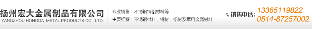 揚州宏大是揚州地區最具規模和影響力的不銹鋼銅鋁專業經銷公司之一。專業代理為客戶提供各種類型不銹鋼銅鋁材。我公司不僅擁有國內的不銹鋼,寧波寶新,張家港浦項,上海克勒伯,上鋼三廠,昆山大庚等產品的代理銷售,同時代理芬蘭outokumpu、法國Ugine、西班牙ACERINOX、韓國POSCO和臺灣燁聯等國際品牌的產品